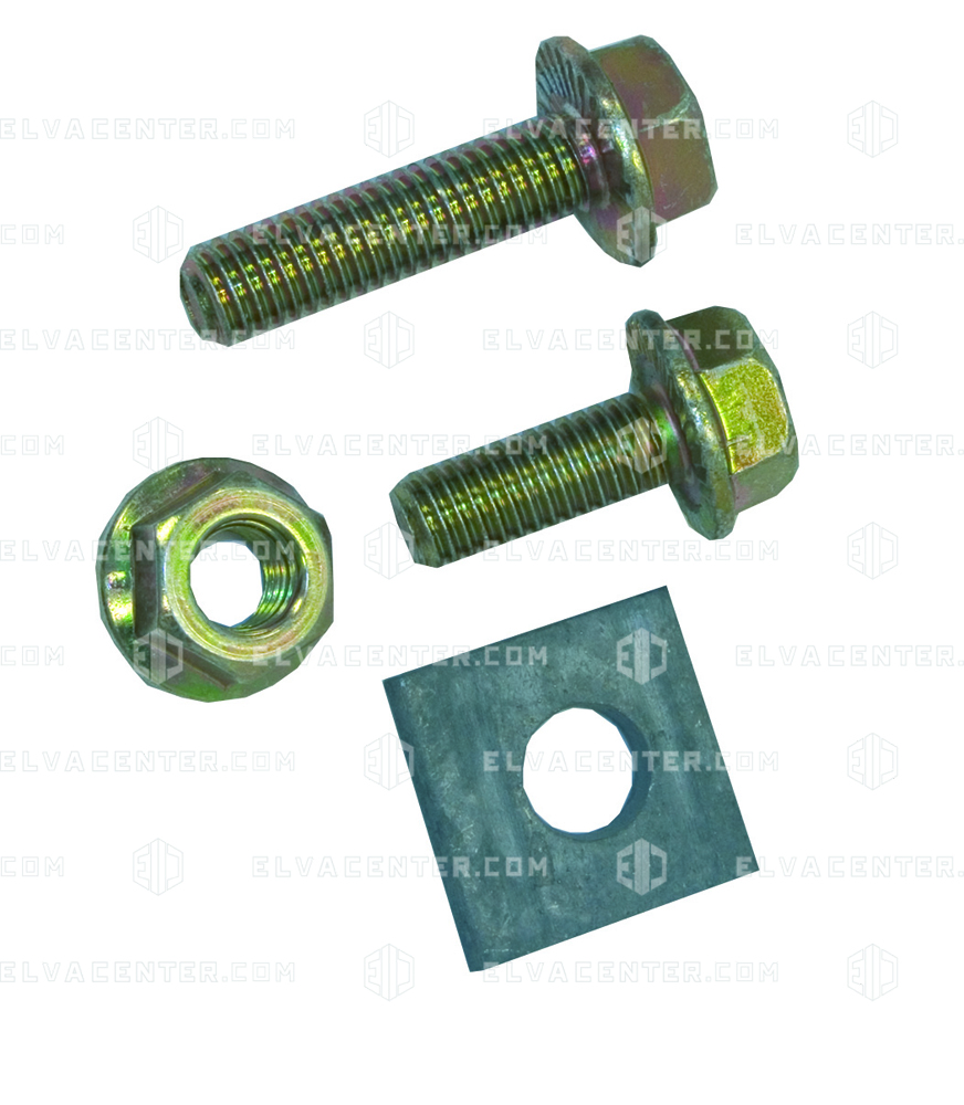 Fastening set type for perforated sheets, consists of: 8x self-locking screws M8x35, 8x self-locking screws M8x20, 16x self-locking nuts M8, 4 wedge washers A9 for U-carrier